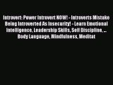 Read Introvert: Power Introvert NOW! - Introverts Mistake Being Introverted As Insecurity!