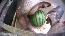 Des hippopotames explosent des pastèques avec leur énorme bouche