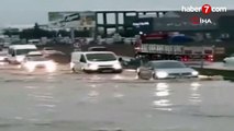 Edirne’de şiddetli yağış sonrası araçlar mahsur kaldı