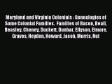 [Download PDF] Maryland and Virginia Colonials : Genealogies of Some Colonial Families. Families