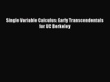 Read Single Variable Calculus: Early Transcendentals for UC Berkeley Ebook Free