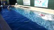 5 yo Doberman Grand Champion Blitz dives underwater in swimming pool!