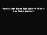 PDF What It Is to Be Human: Hope Lies in Our Ability to Bring Back to Awareness EBook