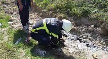 ZİFTE YAPIŞAN YAVRU KÖPEĞİ KDZ. EREĞLİ BELEDİYESİ İTFAİYESİ KURTARDI
