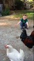 مقطع طريف لطفل يعانق دجاجة . سبحان الله أحسن الخالقين