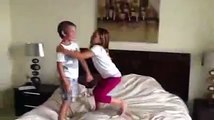 House wrestling. Little boy vs big sister