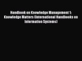 Read Handbook on Knowledge Management 1: Knowledge Matters (International Handbooks on Information