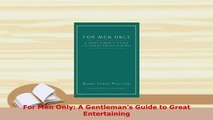 PDF For Men Only A Gentlemans Guide to Great Entertaining Download Online