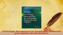 Download Technology Management for Sustainable Production and Logistics EcoProduction Free Books