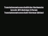 Download Translationswissenschaftlicher Nachwuchs forscht: IATI-Beiträge II (Forum Translationswissenschaft)