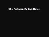 Read What You Say and Do Next... Matters PDF Free