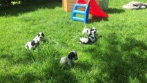 Entre 2 et 3 semaines, le chiot est en période de transition. Il ouvre les yeux, entend les bruits de la maison, entre davantage en contact avec ses frères et sœurs et commencent à marcher. Il se manifeste de plus en plus vivement à l'heure de la tétée (aboiements et jappements). Cette période précède l'étape de socialisation, période durant laquelle le chiot sera en mode "exploratoire" car tous ses sens seront alors parfaitement développés.