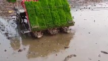 Cette machine peut planter des milliers de plants de riz en Corée du Sud.