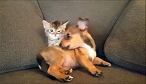 Un chaton joue avec un bébé chien... SO CUTE!