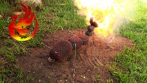 Warning: Please don't do this at home as it can be extremely dangerous. The match-heads are burning when they fly out and can shoot towards you or set things alight nearby. I repeat, DO NOT try this yourself!