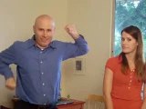 BriE congratulates the first week's Singing winner of Big Shot Live: Kevin Kline of Washington, D.C.