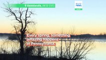 ‘Nature is awesome’: Watch as thousands of snow geese take off for the Arctic at sunrise