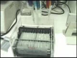 Automated microarray manufacturing robot showing the patented arrayit spotting device in action. To learn more contact Todd Martinsky