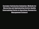 Read Customer Satisfaction Evaluation: Methods for Measuring and Implementing Service Quality