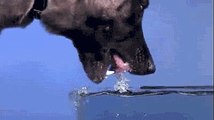 يشرب الكلب المياة عن طريق دفعها ولسانه للخلف وليس الأمام.