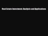 Read Real Estate Investment: Analysis and Applications Ebook Online