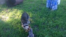 Son chien se fait attaquer par un raton laveur, regardez comment il va le dégager