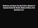 PDF Medicine and Duty: The World War I Memoir of Captain Harold W. McGill Medical Officer 31st