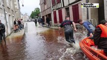 Après la crue historique de la Sauldre, qui a atteint son pic ce jeudi à Romorantin (bien au-delà de celle de 1910), les commerçants du quartier du Bourgeau, très touché par les inondations, ont pu se rendre dans leurs commerces ce samedi 4 juin. Ici, Pierre Richard, patron de l'hôtel bar restaurant le Saint-Jean.