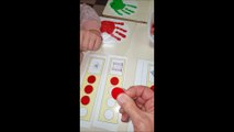 Je mets à la disposition des enfants des cartes à points représentant les quantités de 1 à 10 : ils les manipulent pour écrire des nombres.