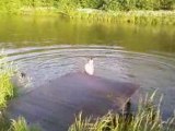Simoné springt over een zetel