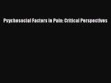 Read Psychosocial Factors in Pain: Critical Perspectives Ebook Free