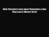 Read What Therapists Learn about Themselves & How They Learn It (Master Work) Ebook Free