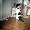 Deux chats adorables s'amusent à se taper les pattes.. Trop chou