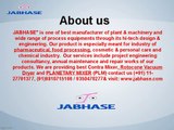 "JABHASE" is one of best manufacturer of plant & machinery and wide range of process equipments through its hi-tech design & engineering. Our Vision & Mission is to supply “best quality product”, “timely delivery”, “cost effective price” through advanced engineering to its prospective buyer of India as well International market. Company adopt & follow the principles of cGMP for quality and performance of the product for trouble free machines & equipments. To more about our services please click here:- www.jabhase.com/contact-us.php