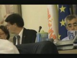 Mme Ripoull, candidate modem à la mairie de Perpignan et M. Carbonell collistier de JP Alduy s'entretiennent au sujet d'une réunion organisée par une loge maçonique.