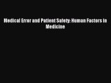 Download Medical Error and Patient Safety: Human Factors in Medicine Ebook Free