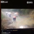 Un camion fonce sur un autre camion en panne sur une route de montagne