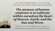 The purpose of human life is to cultivate the heart of Heaven, Earth, and the Sun and Moon. 3-30-26