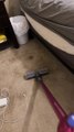 A cute video has emerged of a girl sitting on the vacuum while her mother cleans the room.