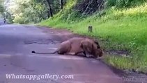 whatsapp latest funny videos real lion in middle of highway in india daytime