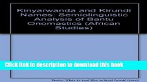 [Download] Kinyarwanda and Kirundi Names: A Semiolinguistic Analysis of Bantu Onomastics Kindle