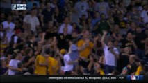 【野球】ホームラン球を取ろうとして食べ物を顔にブチまけてしまう観客 実況者が爆笑
