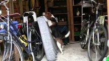 hond sloopt doos