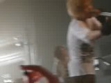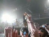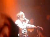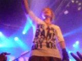 "euh ....." les fans le presse "wait wait !" dit-il en rigolant XD " éclat de rire général! il se lance enfin "je vous..je vous... je vous adoré..je vous adoré de vous" ! tout le monde l'acclame et rigole XD "and euh..." il dit un truc que je ne comprend pas XD tout le monde rigole "and euh...ah ! je vous, je vous aime" dit-il hésitant puis il s'écrie avec enthousiasme, tout content d'avoir réussi "je vous aime ! je vous aime" XD il le répète au moins 5 fois en se tournant vers tous les côtés de la salle. "thank you ! and the next song is Fuzai Toiu Genjitsu E".
