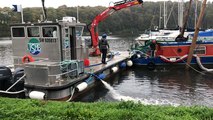 La péniche s’élève au dessus du port du Lyvet