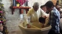 Vergonha !! Criança é batizada a força por padre e pais!