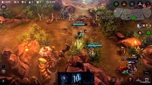 Vainglory is a multiplayer online battle arena (MOBA) game in the style of popular MOBAsLeague of Legends and Dota 2 but designed for smartphones and tablets.[1] As standard for the genre, two opposing teams fight to reach and destroy the enemy's base while defending their own in a tug of war for control of a path, the "lane", which connects the bases.[2] In Vainglory, teams have three players who each control an avatar, known as a "hero",[3] from their own device.[4] Weaker computer-controlled characters, called "minions", spawn at team bases and follow the lane to the opposite team's base, fighting enemies and turrets en route.[2] Lining the lane are turret towers that repel the flow of minions and enemy heroes. The player's objective is to destroy the enemy turrets and the "Vain Crystal" in the enemy team's base. If a crystal is destroyed, the team who destroyed the crystal wins.