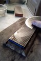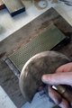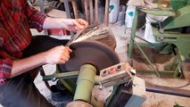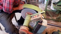 Deuxième étape : polissage de la lame à l'aide d'un disque cuir enduit d'émeri.