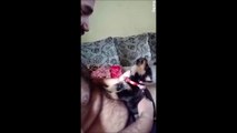 Petite leçon de hurlement pour ce chiot trop mignon