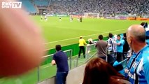 Le match du championnat brésilien entre le Gremio Porto Alegre et Palmeiras (0-0) a été interrompu en raison d’une intrusion peu banale dimanche soir. Candidate à l’élection de «Miss Bumbum», qui consacre les plus belles fesses du Brésil, Danny Morais, après avoir échappé à la vigilance d’un steward, a pénétré sur la pelouse de l’Arena do Gremio, où elle a tenté d’enlacer Guilherme. Un joli coup de pub pour celle qui a été vite maîtrisée par les agents de sécurité.